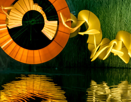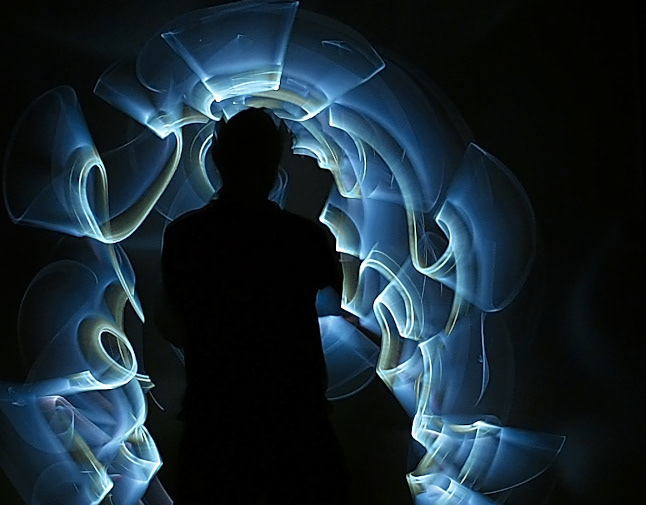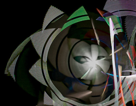 Fotografisch anspruchsvoll: die Kombination reflektierten Lichts der Umgebung mit der gezeichneten Lichtspur reinen Lichts bei der Performance - Motive verschmelzen zum Bild