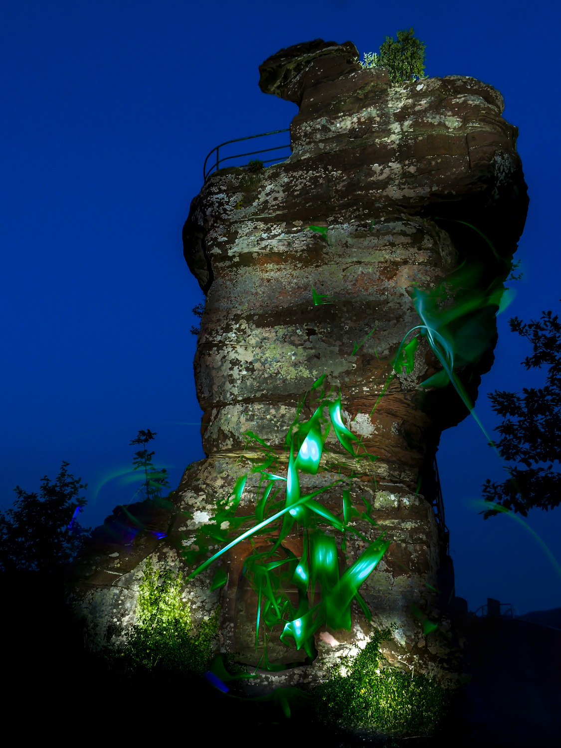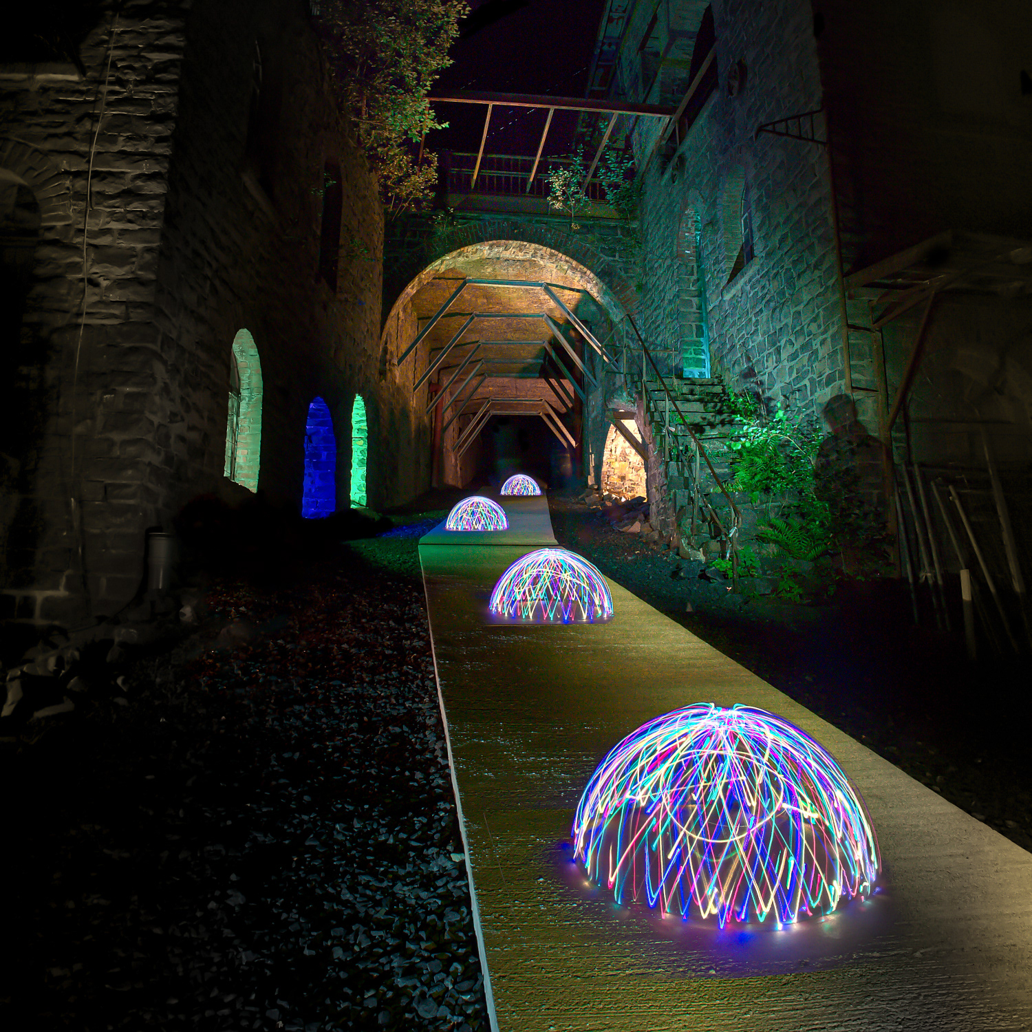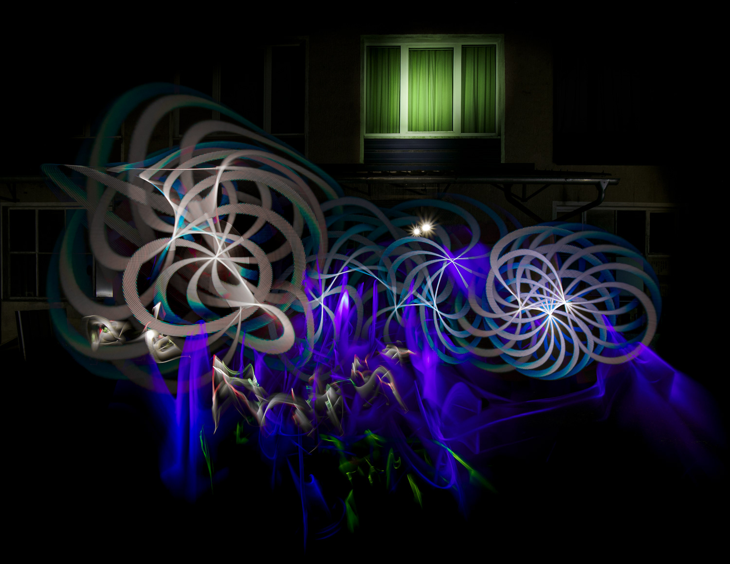 Lichtmalerei im Freien oder in großen Räumen bezieht den Umraum in das Bild ein. Die unveränderlichen Elemente werden mittels Licht inszeniert und werden so zur Bühne für die Lichtperformance, die sich bestmöglich in das Bildgeschehen integriert. Das erfordert ein Gespür für die formale und inhaltliche Komposition und ist entsprechend aufwändig. Die Anforderungen ähneln denen, die an Rauminstallationen gestellt sind.